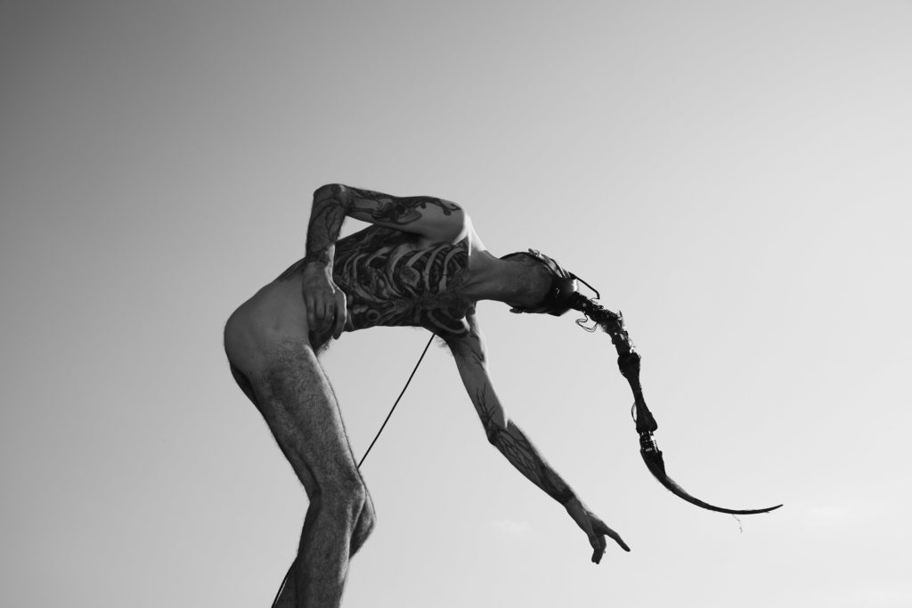Originally a musician and sound designer, his artworks from the early 2000s are sound and video compositions for fixed media, web-based audio installations and participative concerts. A collaboration with a butoh project by dance company I-Dejas in 2007 prompted his shift to body performance, which he began complementing with methods of human-machine interaction. In 2010, he engineered the XTH Sense, a wearable biosensor that allows improvising computer music by sampling sounds within a performer’s body, what is known as biophysical music. The XTH Sense became a platform to experiment with the sonic and visceral body and it is, still today, a signature element of his work.